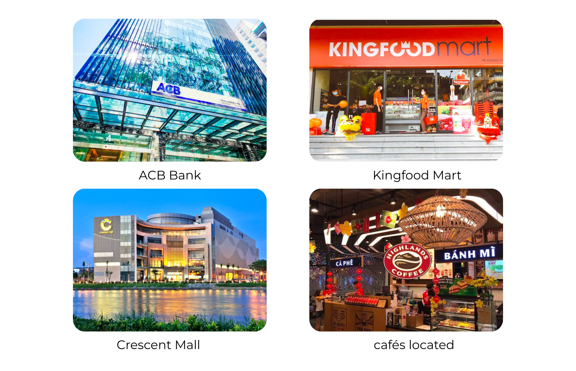 - A variety of restaurants and cafés located in the Phu My Hung urban area