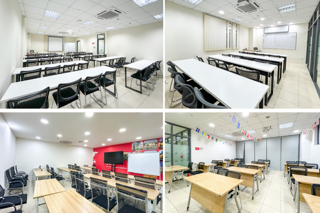 Mỗi lớp học tại SBS được thiết kế tối ưu từ 15 đến 35 sinh viên, đảm bảo tính tương tác và hiệu quả giảng dạy. Không gian học tập được trang bị đầy đủ các thiết bị hiện đại như máy chiếu, tivi màn hình lớn và bảng di động, đáp ứng toàn diện nhu cầu học tập và thảo luận.