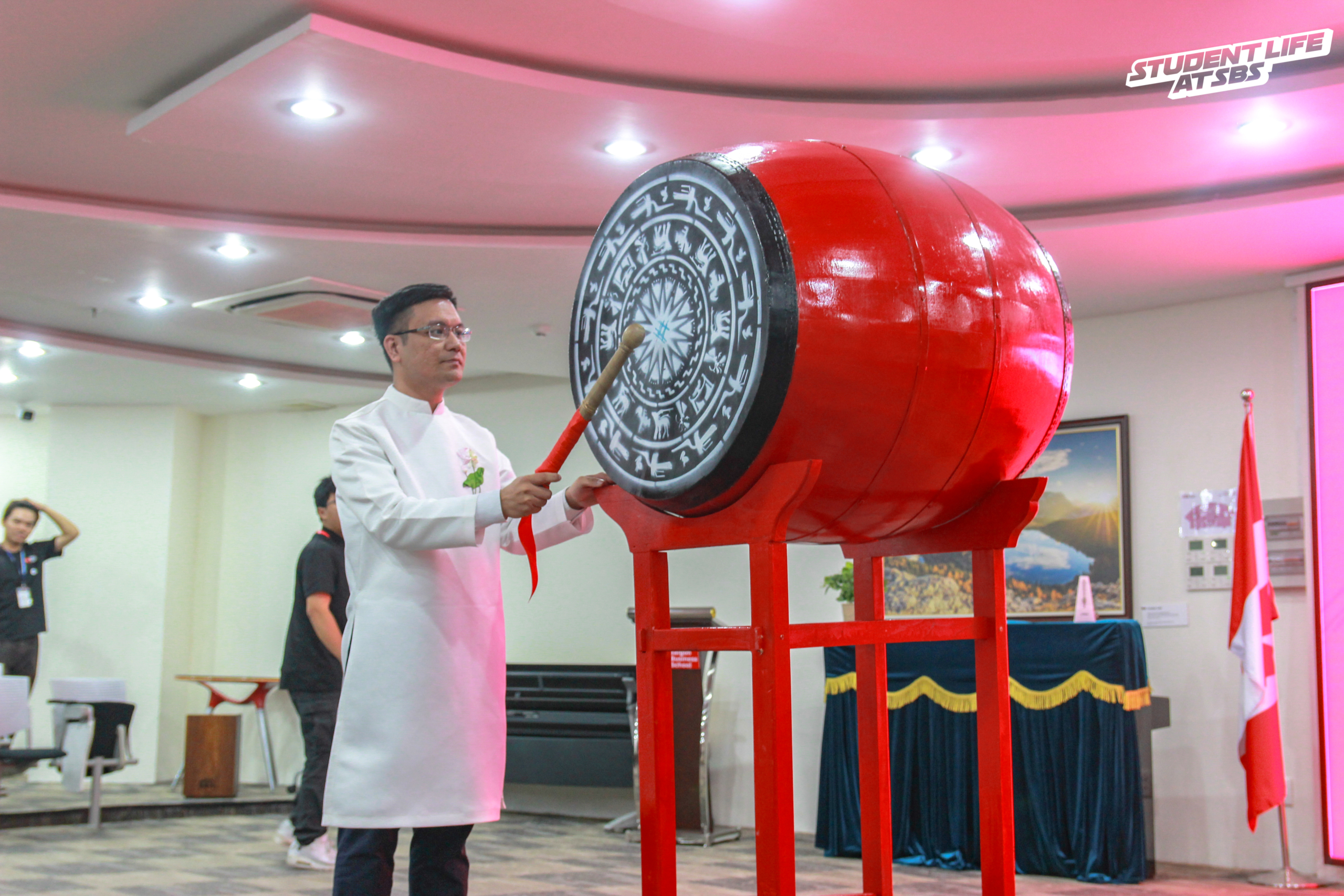 Thầy Hoàng Văn Cương, Giám đốc điều hành SBS đánh trống khai giảng