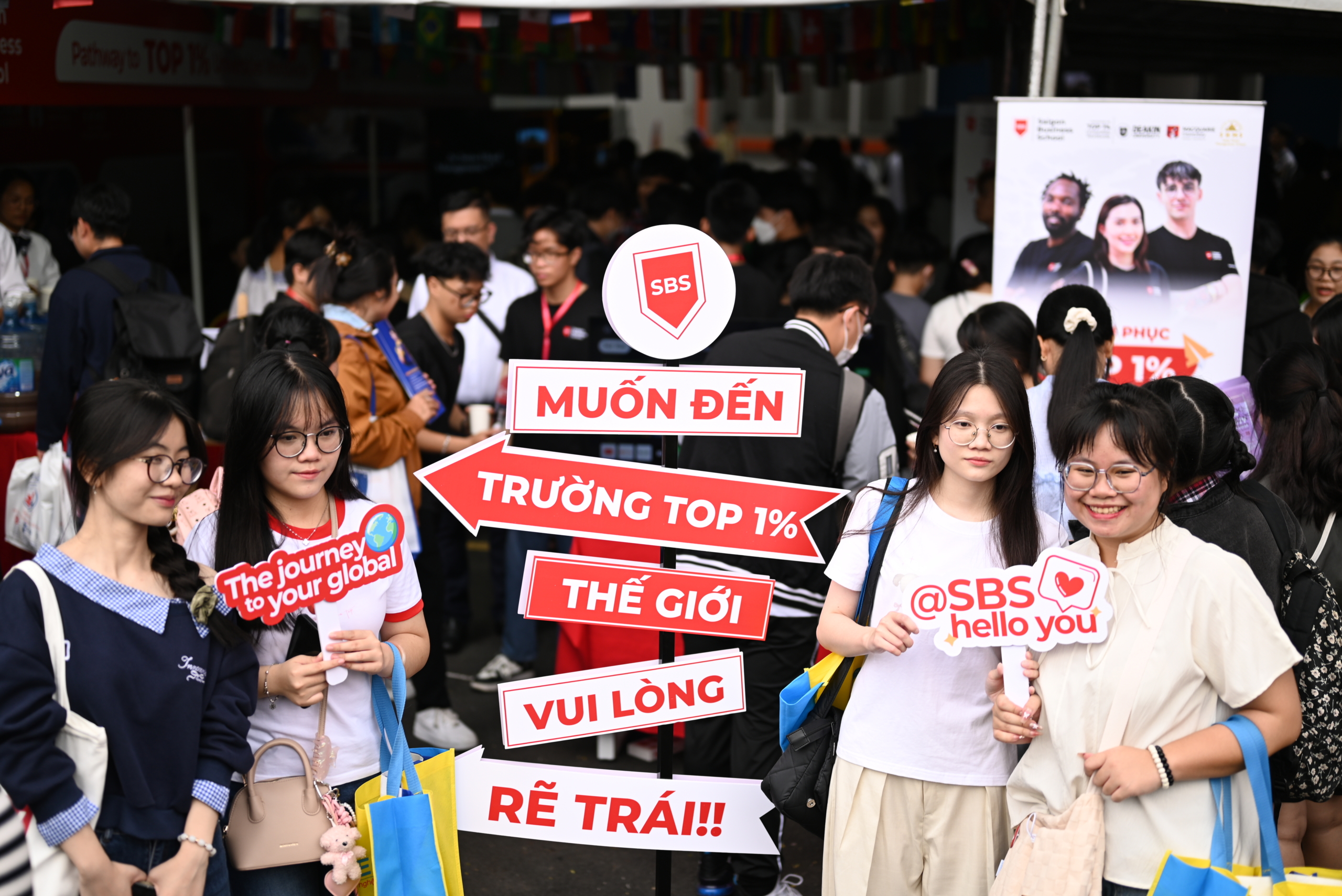 Với tinh thần năng động, nhiệt huyết, sinh viên Saigon Business School (SBS) đã có mặt tại sự kiện tuyển sinh 2025 tại Đại học Bách Khoa TP.HCM, giao lưu cùng hàng ngàn học sinh và phụ huynh. Không chỉ mang đến những thông tin hữu ích về chương trình đào tạo, sinh viên SBS còn lan tỏa nguồn năng lượng tích cực qua các hoạt động tương tác, chia sẻ kinh nghiệm học tập và hướng nghiệp.
