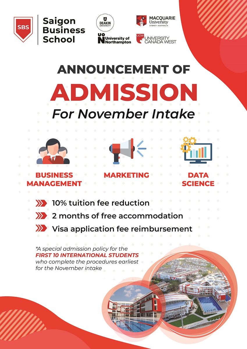 Hội đồng Tuyển sinh Saigon Business School (SBS) chính thức thông báo tuyển sinh cho kỳ nhập học tháng 11 đối với các chương trình liên kết sau: